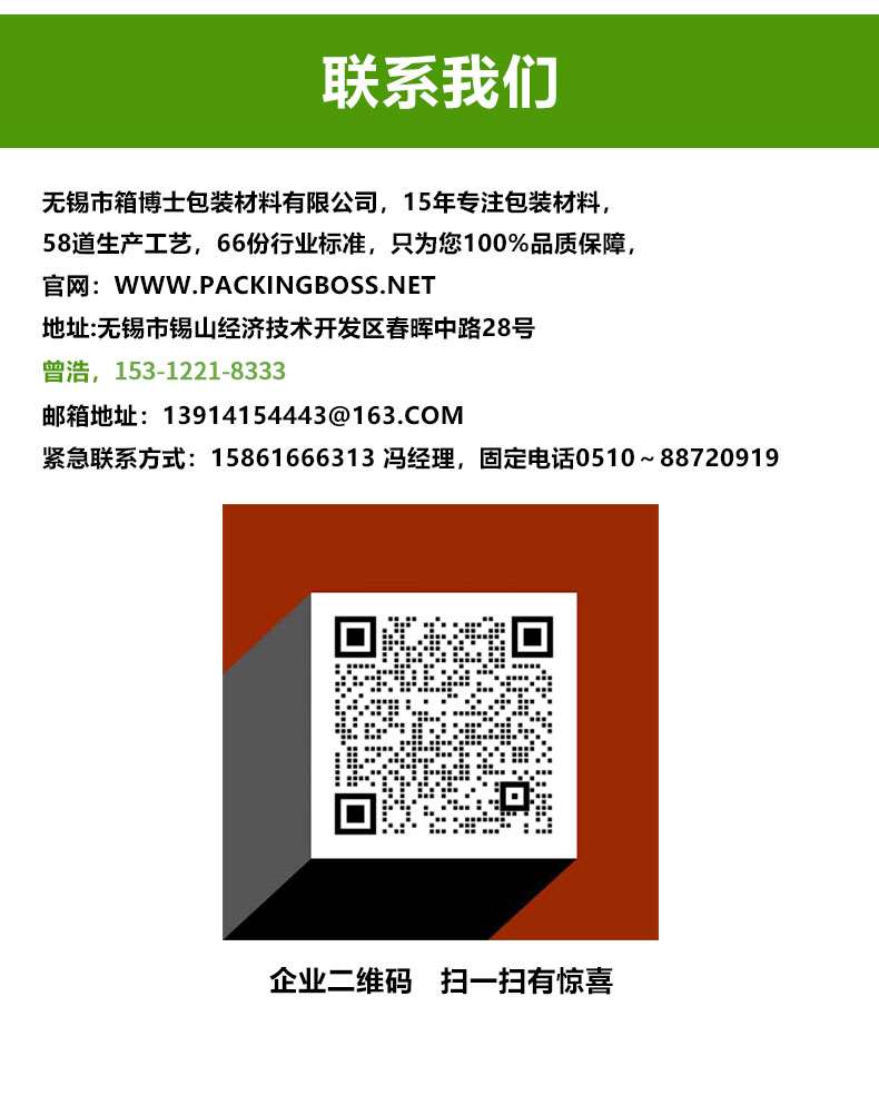 我們有經驗豐富的研發(fā)人員和生產技術部門,為了追求低價而降低產品質量,滿足各類客戶專屬包裝產品的定制生產。 上海箱博士包裝材料有限公司 版權所有 蘇ICP備13058823號-5